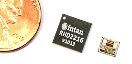 While I would love to slowly learn the specific electronics needed to construct an electrophysiology recording system from individual discrete components, I quickly realized that this would be an uphill battle, not just due to my novice electronics knowledge, but also due to the noise and interference that would degrade the signal. It would also end up to be a much bulkier device than I designed for. My collaborators at MIT had spare Intan electrophysiology chips that implement the the filters, amplifiers, and digitization in a silicon integrated circuit chip. They are a hefty $250 and are the main/only chip on the US market, so this is clearly where a lot of the expense comes from. The chip takes 16 channels and provides a serial peripheral interface (SPI) protocol to communicate with the microcontroller. This means that I can read from 16 channels from 4-wires. Now that I had found the main components of the system, I realized that it would be a fairly simple system to design a flexible PCB to incorporate.
