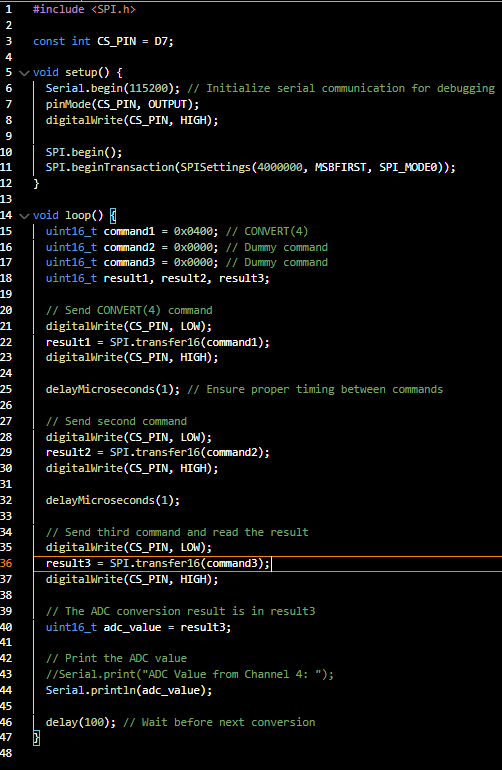 In order to get the PCB up and running, I had to write some code to get the microcontroller to talk to the Intan chip. The XIAO/nrf52840 is able to be programmed through Arduino. With some help from ChatGPT, I was able to analyze the datasheet for the RHD2216 and write a SPI driver to get data from the chip. One way to check that everything is hooked up correctly is to read from registers 40-44. If it spells, ‘INTAN’, everything is good. Otherwise, you can read the values from the electrodes of your choosing (with a delay). Unfortunately after a day of working the code started spitting out the dreaded: “It’s only returning 1’s now…”