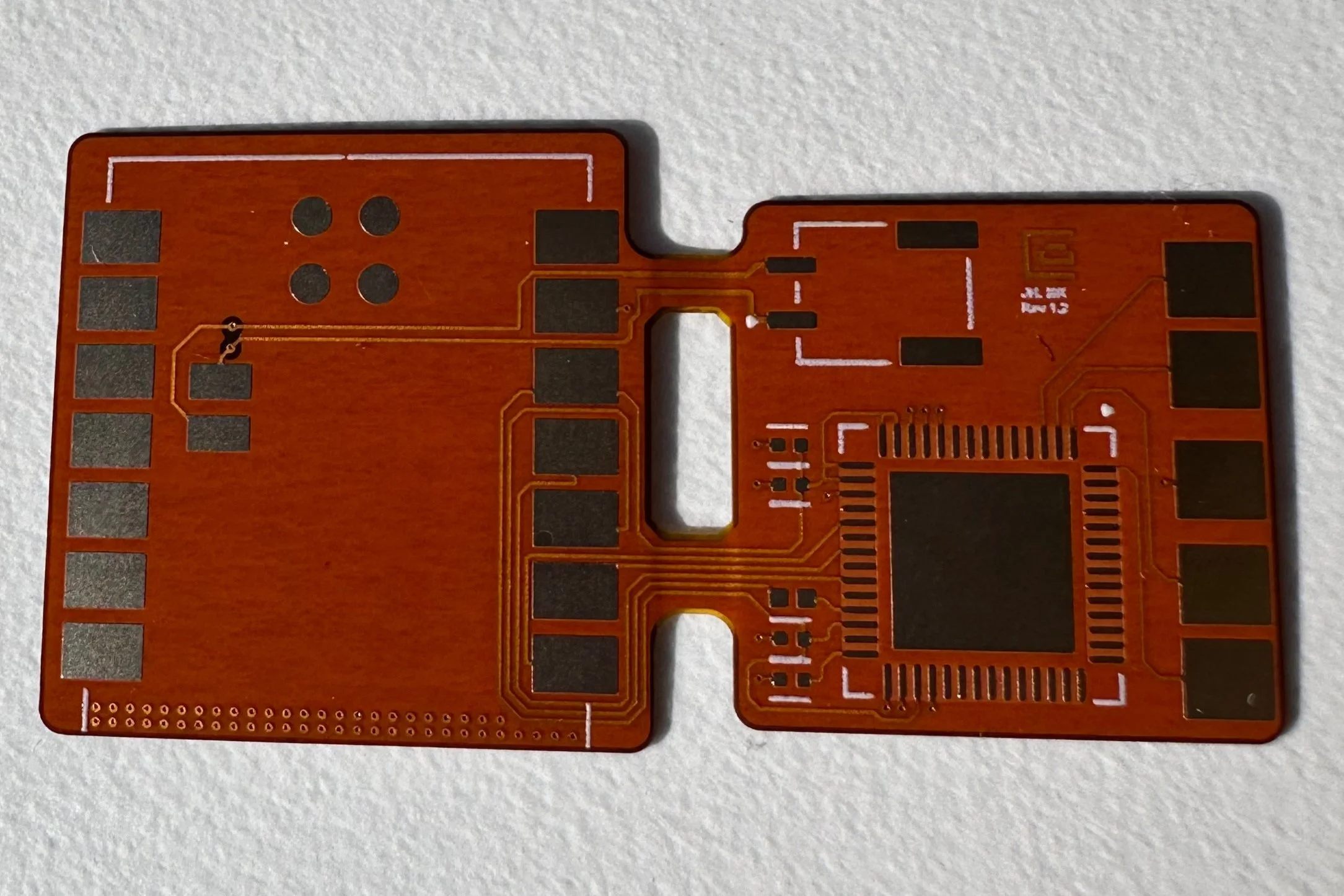 Version 1 consisted of the XIAO Sense microcontroller and the Intan RHD2215, a battery connector, and a couple pads to bond the electrodes. I used 6 mil traces on a 2 layer flexible PCB. I also defined the board outline and made sure that the components were placed close to the Ephys chip. After a design review, we sent them off to the PCB manufacturers in China!